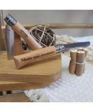 Couteau Opinel n°8 personnalisé...29,90 €Découvrez le set opinel n°8 Picnic+ à personnaliser, idéal pour vos repas en extérieurs (camping, bivouac, pique-nique) ou pour manger sur le pouce au bureau. Très pratique vous disposez d'un opinel n°8, de deux inserts, 1 cuillère et 1 fourchette se fixant sur le manche du couteau, ainsi que d'un étui-serviette microfibre faisant office de rangement et de nettoyant. Des ustensiles pour manger confortablement où que vous soyez. À personnaliser avec le prénom de votre choix pour le rendre unique. Délai de confection 24h-48h