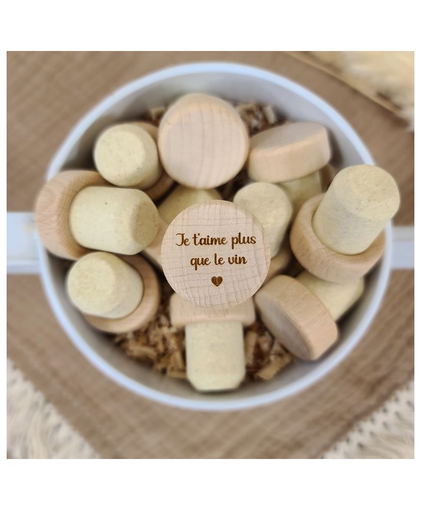 Bouchon de vin gravé "Je t'aime plus que le vin"