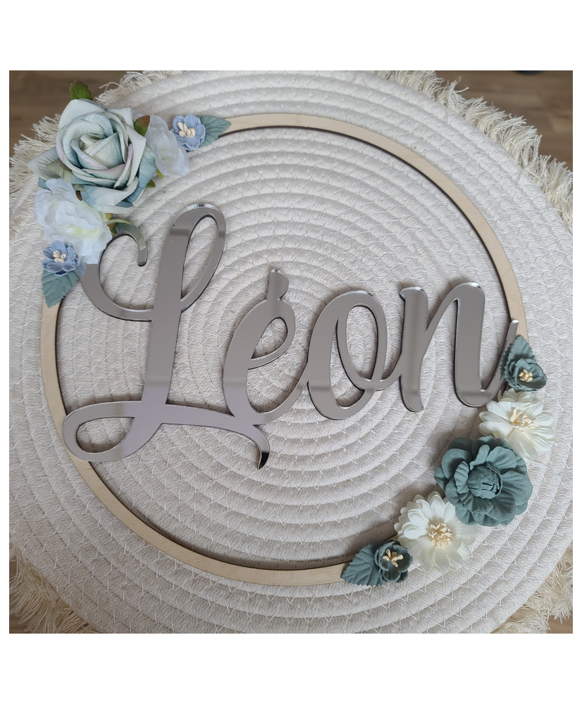 Découvrez nos couronnes fleuries avec le prénom à suspendre dans une chambre enfant pour décorer ou lors d'un évènement. D'un diamètre de 28cm, l'association de bois et de fleurs artificielles assemblées une à une par nos soins, donnera un charme unique et personnalisé à votre pièce.