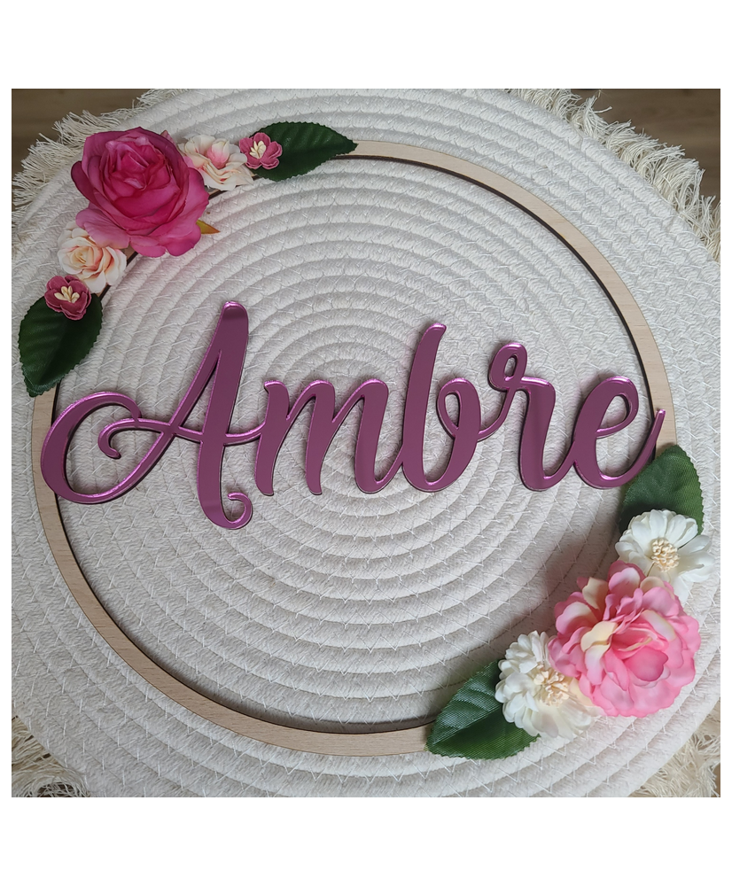 Découvrez nos couronnes fleuries avec le prénom à suspendre dans une chambre enfant pour décorer ou lors d'un évènement. D'un diamètre de 28cm, l'association de bois et de fleurs artificielles assemblées une à une par nos soins, donnera un charme unique et personnalisé à votre pièce.