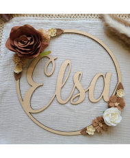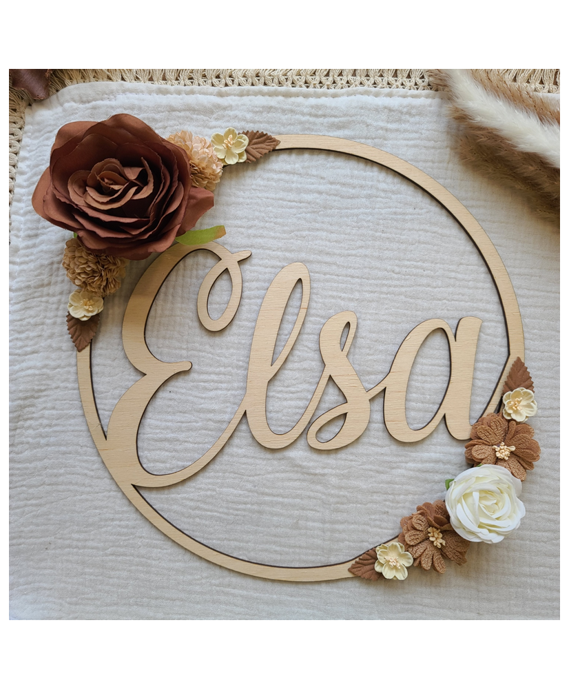 Découvrez nos couronnes fleuries avec le prénom à suspendre dans une chambre enfant pour décorer ou lors d'un évènement. D'un diamètre de 28cm, l'association de bois et de fleurs artificielles assemblées une à une par nos soins, donnera un charme unique et personnalisé à votre pièce.