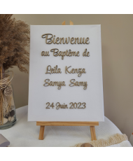 Découvrez nos toiles à personnaliser avec la police de votre choix pour la décoration de vos évènements (mariage, baptême, anniversaire).