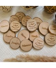 Découvrez nos marques places rondin personnalisés sur une (ou deux faces en option) pour vos évènements (mariages, baptêmes, anniversaires, ...). De quoi rendre votre présentation de table unique et originale.