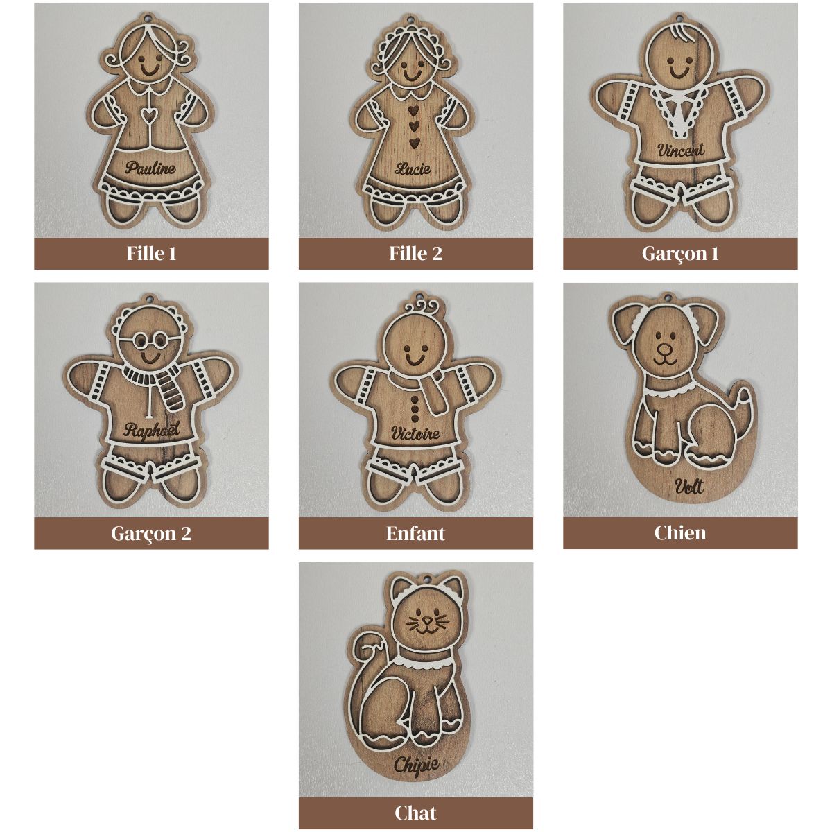 Chaque boule, réalisées par nos soins dans notre atelier en Picardie, représente un membre de la famille : papa, maman, enfants, et même le petit chien ! De charmants personnages au doux parfum d’enfance, parfaits pour créer une décoration chaleureuse. 🎄✨