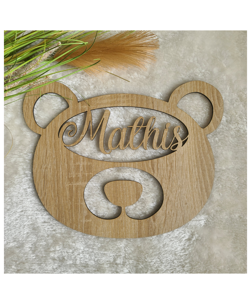 Découvrez notre plaque de porte en forme d'ours, à personnaliser avec le prénom de votre petit bout.