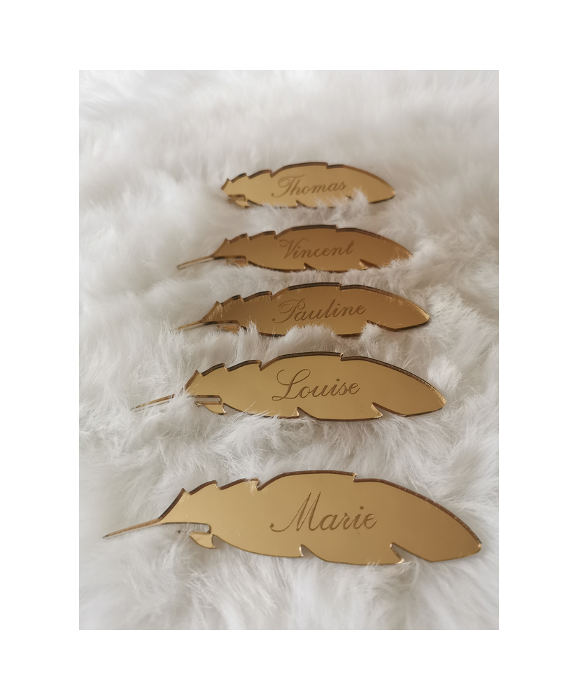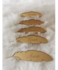 Ces petites plumes en finition miroir mesurent 12cm de long sur 3cm de large et peuvent être accrochés sur un verre (selon l'épaisseur du verre).